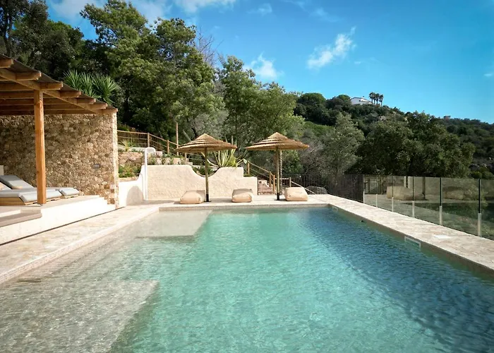 エスタンス公園から3kmに位置するベッドルーム4室のVilla Azure 8P. - Zazu Villas ジローナは、海の眺めを望むテラスを提供しています。 プールを提供するこの宿泊施設から車で10分離れたCosta Brava Parc Aventura Platja d'Aroお客様を招待いたします。